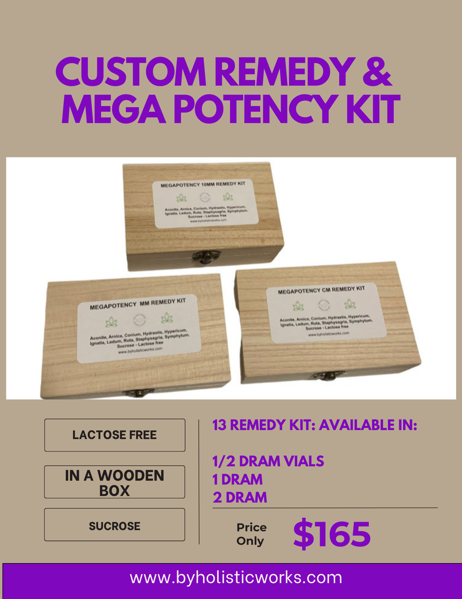 This kit will contains 13 custom remedies used in Mega potency homeopathic method as per Jill Turland "Getting Bach On Track":